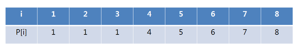 위와 같이, 모든 값이 단일 노드일 때 P[i]의 값은 자기 자신이 된다.
