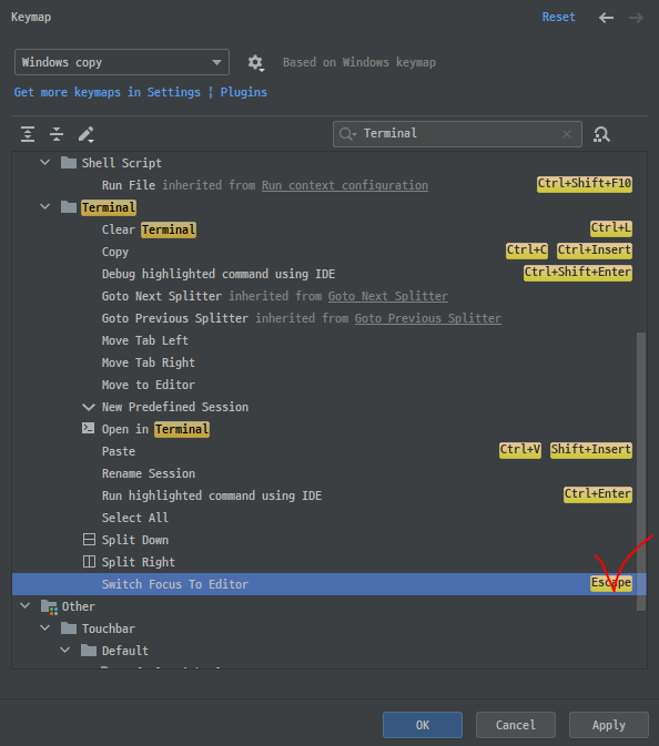 IntelliJ 사용 시, Editor Terminal 기능으로 VI 사용하다가 ESC 키 누르면 에디터 창으로 전환되는 문제가 있다.